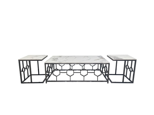 طقم طاولة قهوة مكون من ثلاث قطع - ستانلس ستيل ذهبي غير لامع ورخام