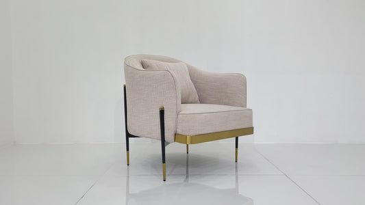 كرسي بذراعين - 700 واط * 720 عمق * 800 ارتفاع مع ستانلس ستيل أسود وذهبي غير لامع وقماش بيج