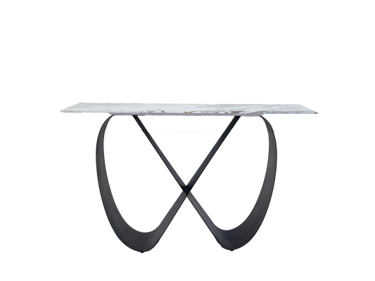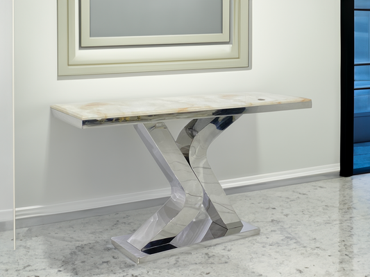 Console Table - 1400W * 400D * 800H with Shiny Silver Stainless Steel and Marble