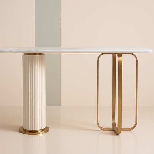 Console Table - 1400W * 400D * 800H with Matte Gold Stainless Steel and 18mm Marble