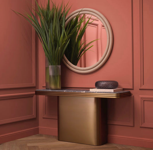 Sleek and Stylish Console Table in Brass Matt Color Stainless Steel