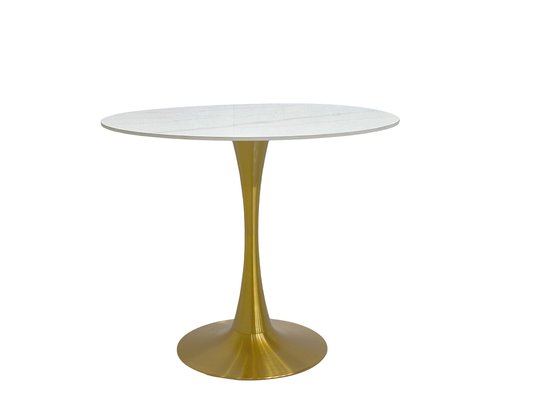 Round Marble & Stainless Steel Dining Table for 2-4 People.