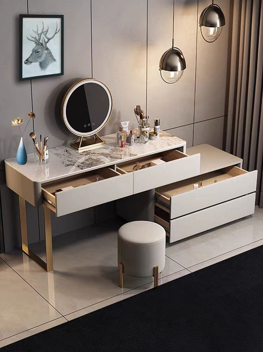 Complete Makeup Set: 100cm Vanity + 100cm Trolley + Stool + Mirror - Marble Top & Painted Cabinet
