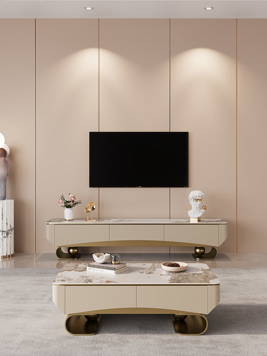 200*40 Light Luxury TV Cabinet - Marble & Solid Wood