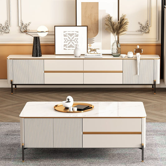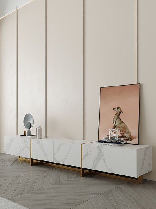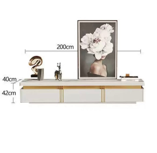 Luxurious 200*40 TV Cabinet - White Slab & Painted Solid Wood