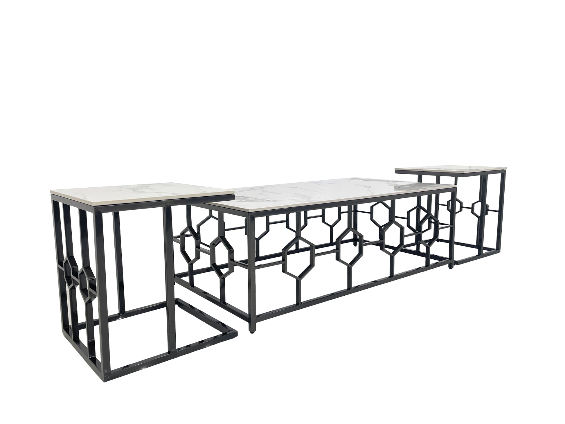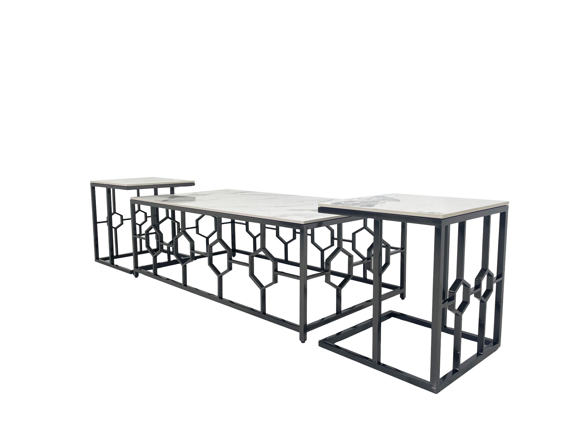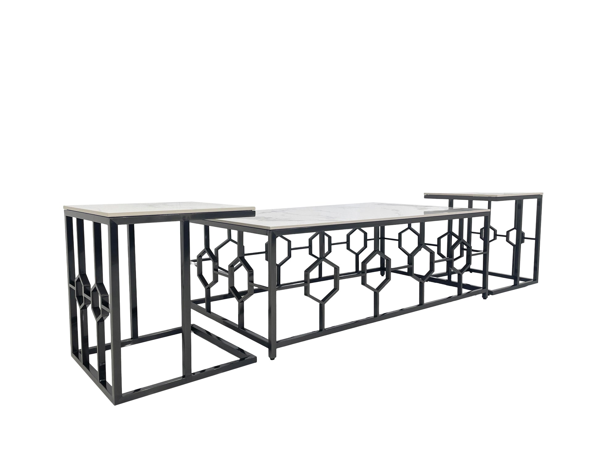 Coffee Tables - "1300W * 700D * 450H + 450 * 450 * 500 (1 + 4)" with Shining black Stainless Steel and 12mm Slate Marble