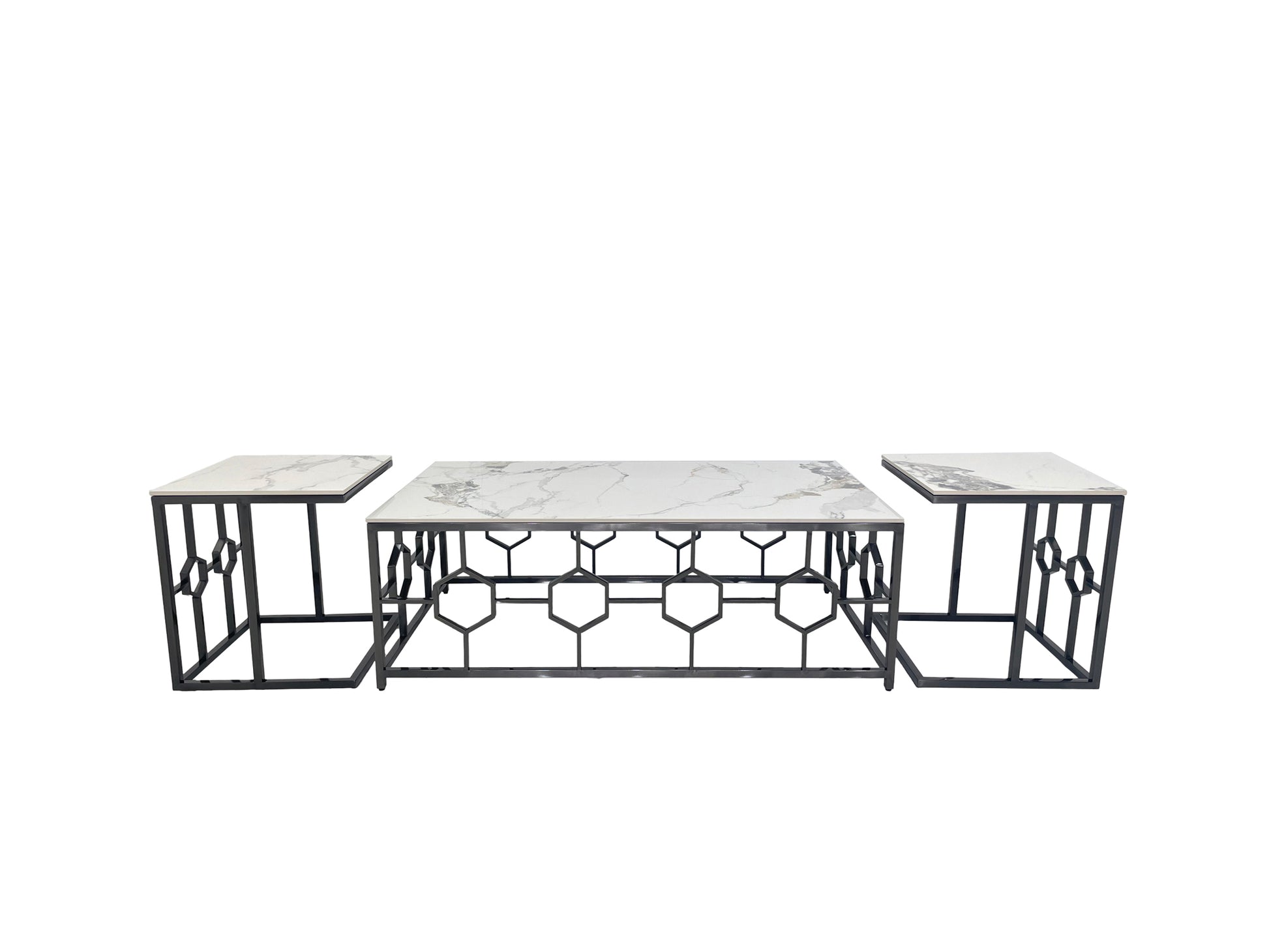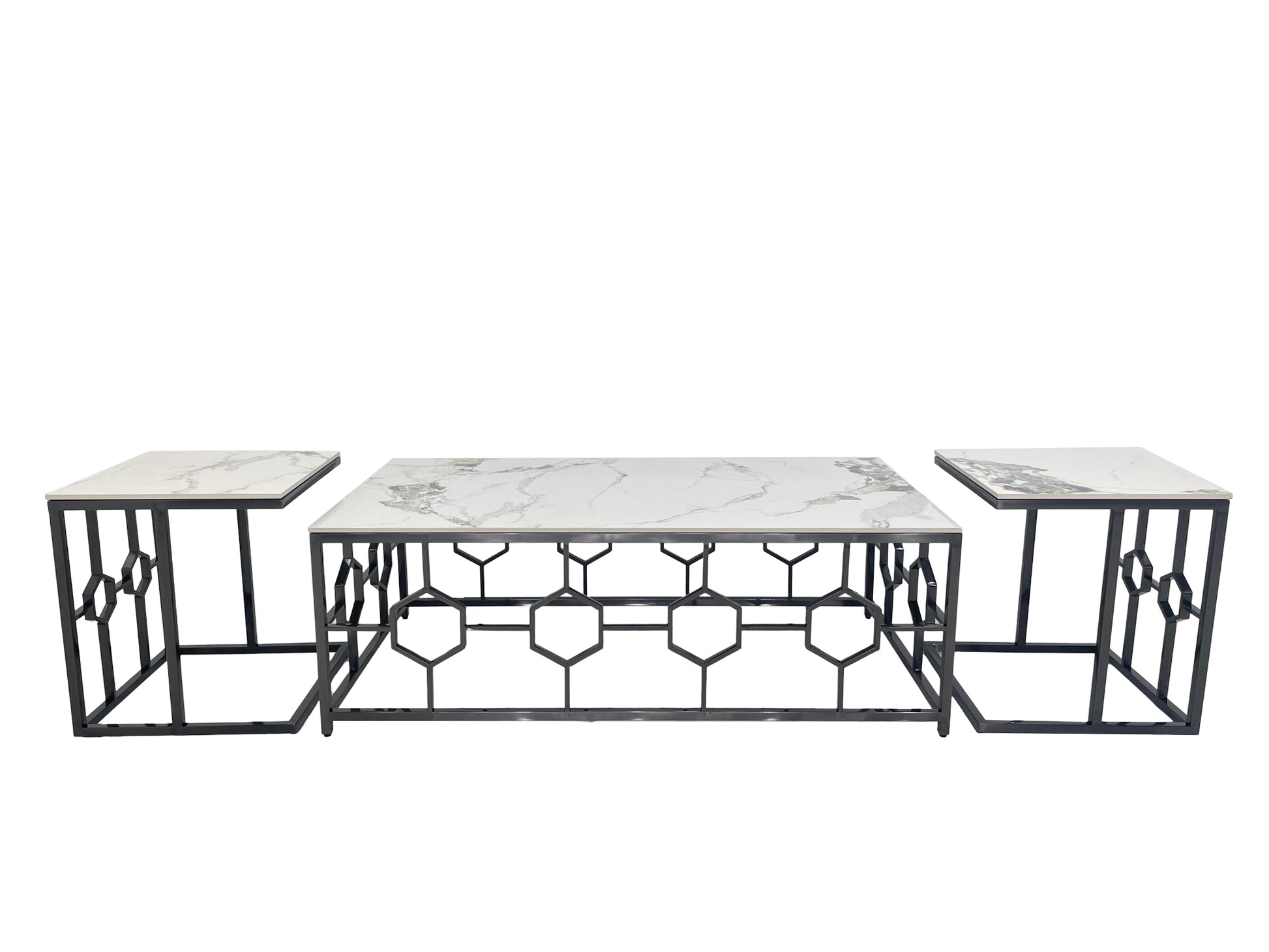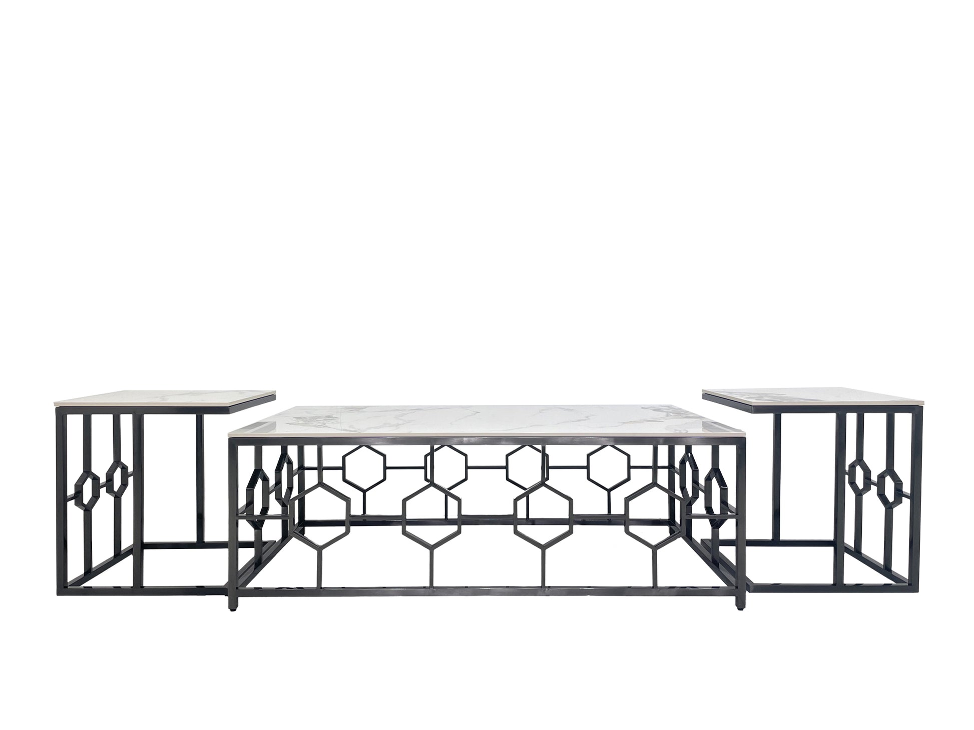 Coffee Tables - "1300W * 700D * 450H + 450 * 450 * 500 (1 + 4)" with Shining black Stainless Steel and 12mm Slate Marble