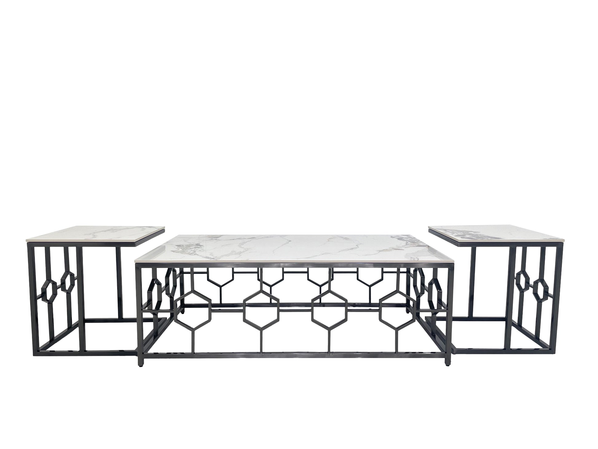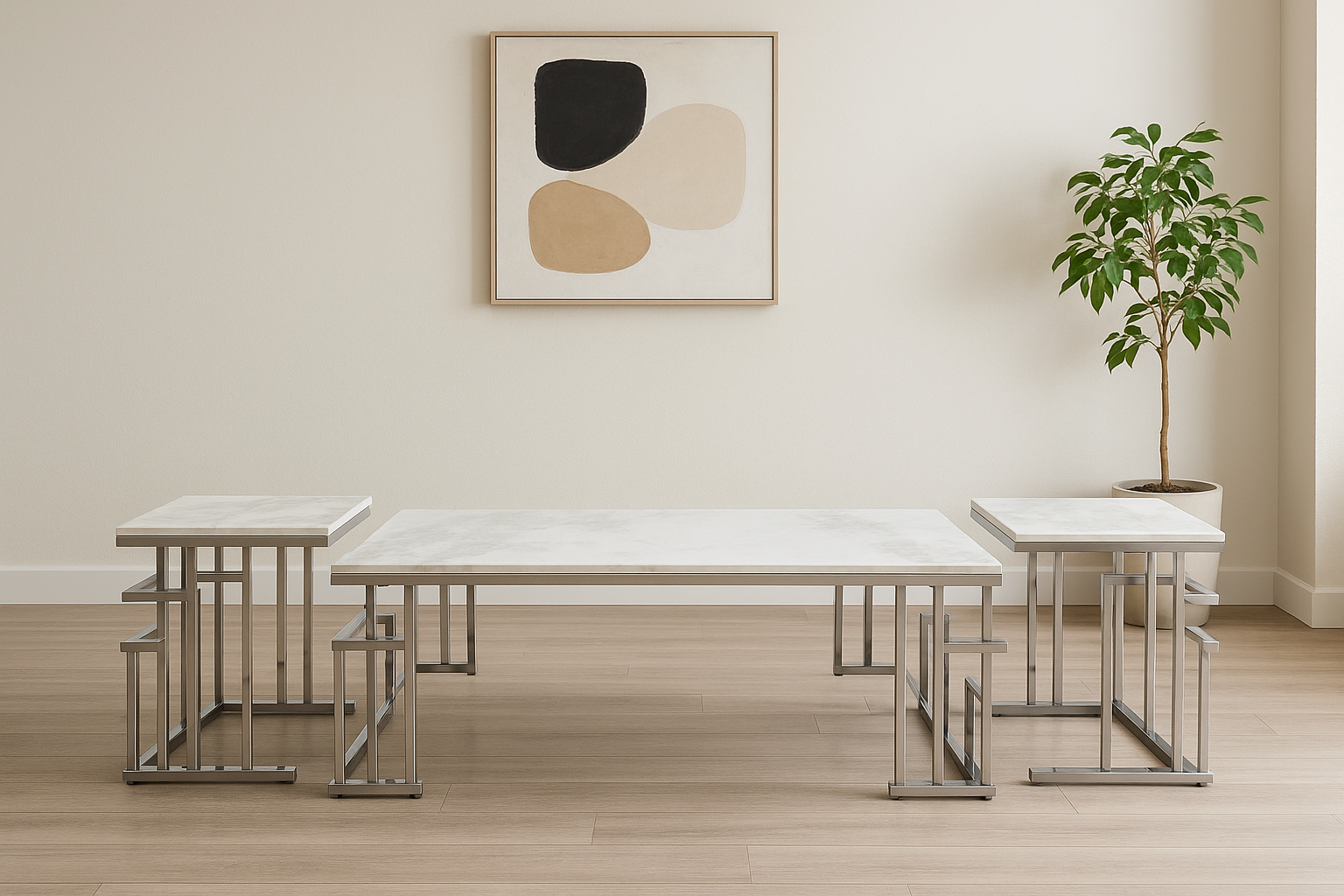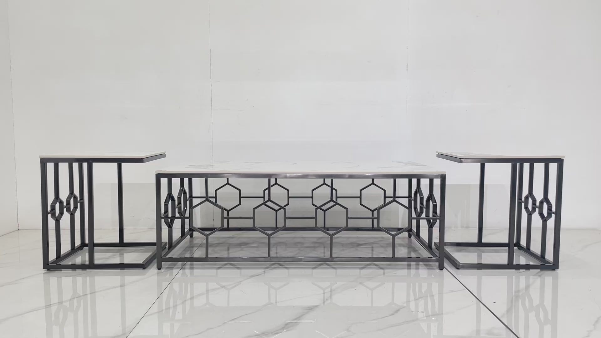 The shining champagne gold color of the stainless steel contrasts beautifully with the dark tones of the slate marble, creating an eye-catching and sophisticated look. This set offers both functionality and style, allowing you to arrange the tables in various configurations to suit your needs and space. Whether used for hosting guests or for your own relaxation, these coffee tables are sure to make a statement in your living area.
